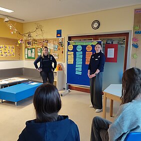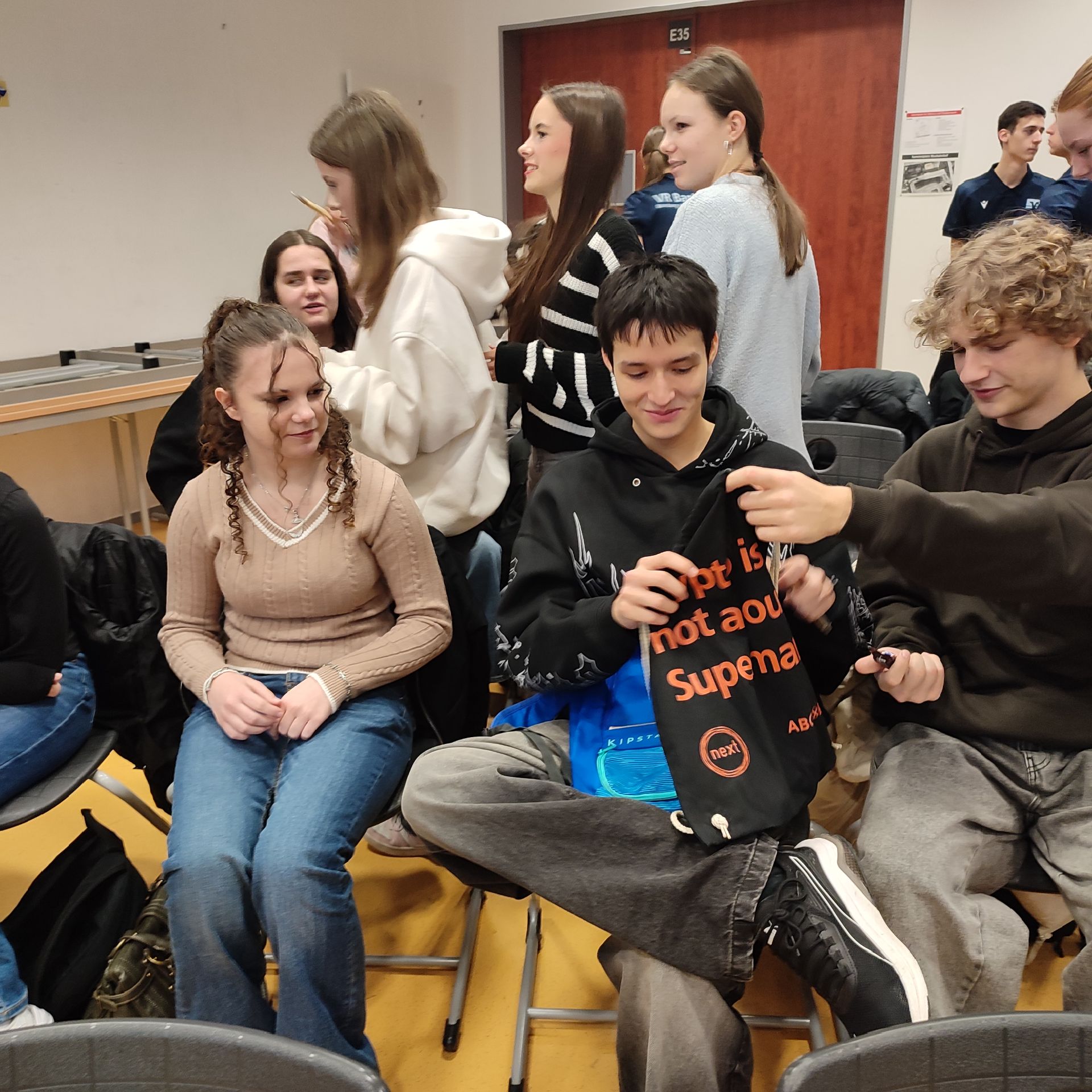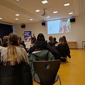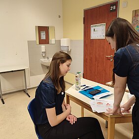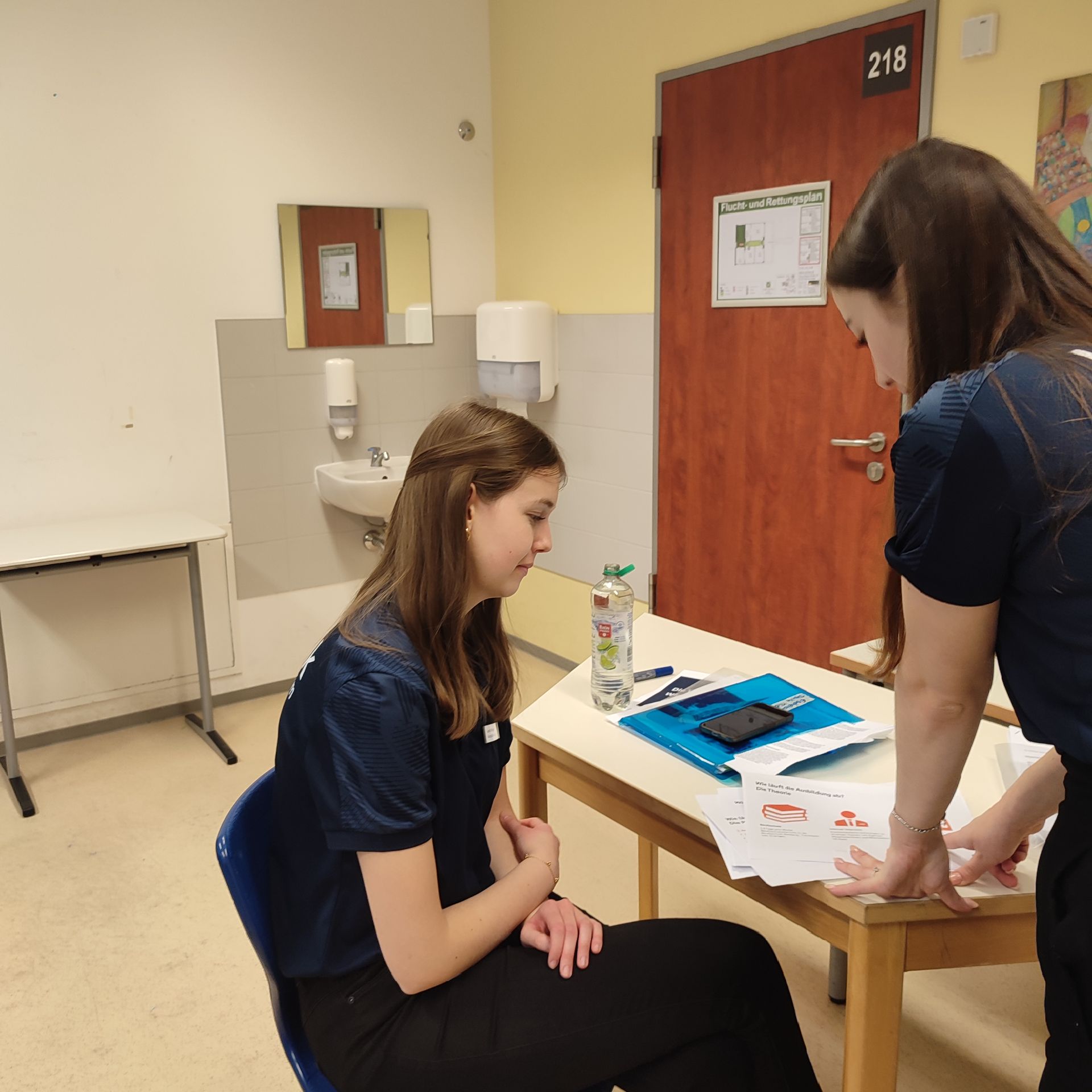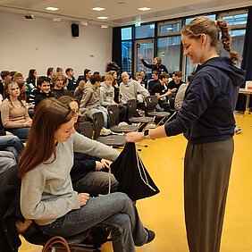 „Durchstarten“ ist ein Workshop rund um das Bewerbungsverfahren. Hierbei erhielten alle Beteiligten die Gelegenheit, sich einerseits über die Aufgaben eines Kreditinstitus zu informieren und andererseits – als Schwerpunkt - realitätsnah Situationen im Zusammenhang mit der Praktikums- und Ausbildungssuche zu meistern. Die Auszubildenden des 1. und 2. Ausbildungsjahres der Volksbank betreuten im Stationsbetrieb unsere Schülerinnen und Schüler – aufgeteilt in Kleingruppen: