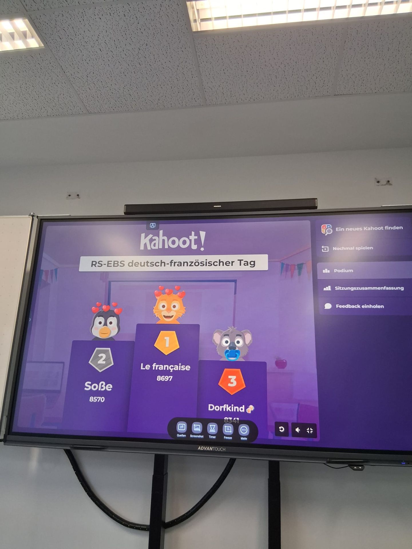 Neben dem Pausenverkauf hatten die Schüler auch die Möglichkeit, sich mit Hilfe von Plakaten über die Geschichte und Wichtigkeit dieses Tages zu informieren. Ihr Wissen konnten sie anhand eines Kahoots überprüfen. Ferner gab es Gelegenheit, sich einen Moustache oder eine französische Flagge schminken zu lassen. Die Möglichkeit Boule – das Lieblingsspiel der Franzosen – einmal selbst auszuprobieren, musste leider aufgrund der unebenen Gegebenheiten unseres Pausenhofs auf den nächsten deutsch-französischen Tag verschoben werden.