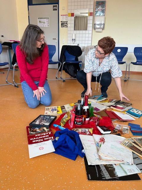 Besonders lebendig wurde der Vormittag durch zahlreiche authentische Exponate: Neben privaten Fotografien brachten die beiden Frauen originale Dokumente wie alte Ausweise, Zeugnisse sowie Schulhefte und Lektüren mit. Für Staunen sorgten außergewöhnliche Fundstücke wie eine über 50 Jahre alte Bildermappe aus der Kindergartenzeit, ein Original-FDJ-Hemd und Vinyl-Schallplatten aus den 1980er Jahren.