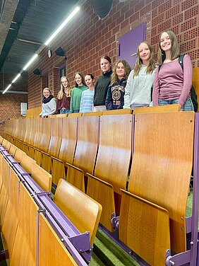 Am Montag, den 02.03.2026, machten sich neun Schülerinnen gemeinsam mit zwei Lehrkräften auf den Weg zur Universität Bayreuth. Ziel war die Teilnahme am Workshop-Projekt „Mebionauten“ – einem spannenden Programm rund um digitale Medien und soziale Netzwerke.