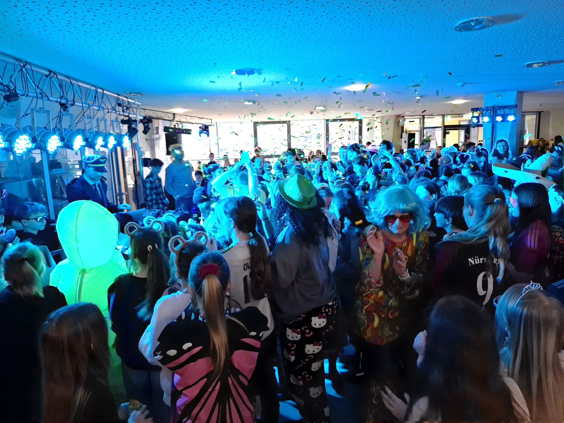 Die Atmosphäre? Fröhlich, ausgelassen und einfach ansteckend! Schülerinnen, Schüler und Lehrkräfte feierten gemeinsam, sangen lautstark mit und genossen die besondere Gemeinschaft, die solche Aktionen immer wieder entstehen lässt. So konnte wirklich jeder beschwingt und mit einem Lächeln im Gesicht in die wohlverdienten Faschingsferien starten.